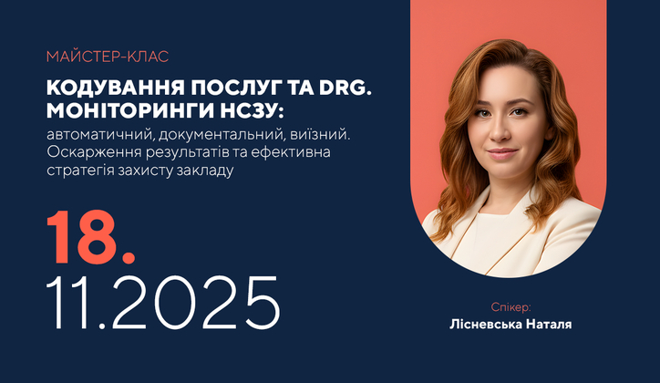 Майстер-клас на тему: «Кодування послуг та DRG. Моніторинги НСЗУ: автоматичний, документальний, виїзний. Оскарження результатів та ефективна стратегія захисту закладу»